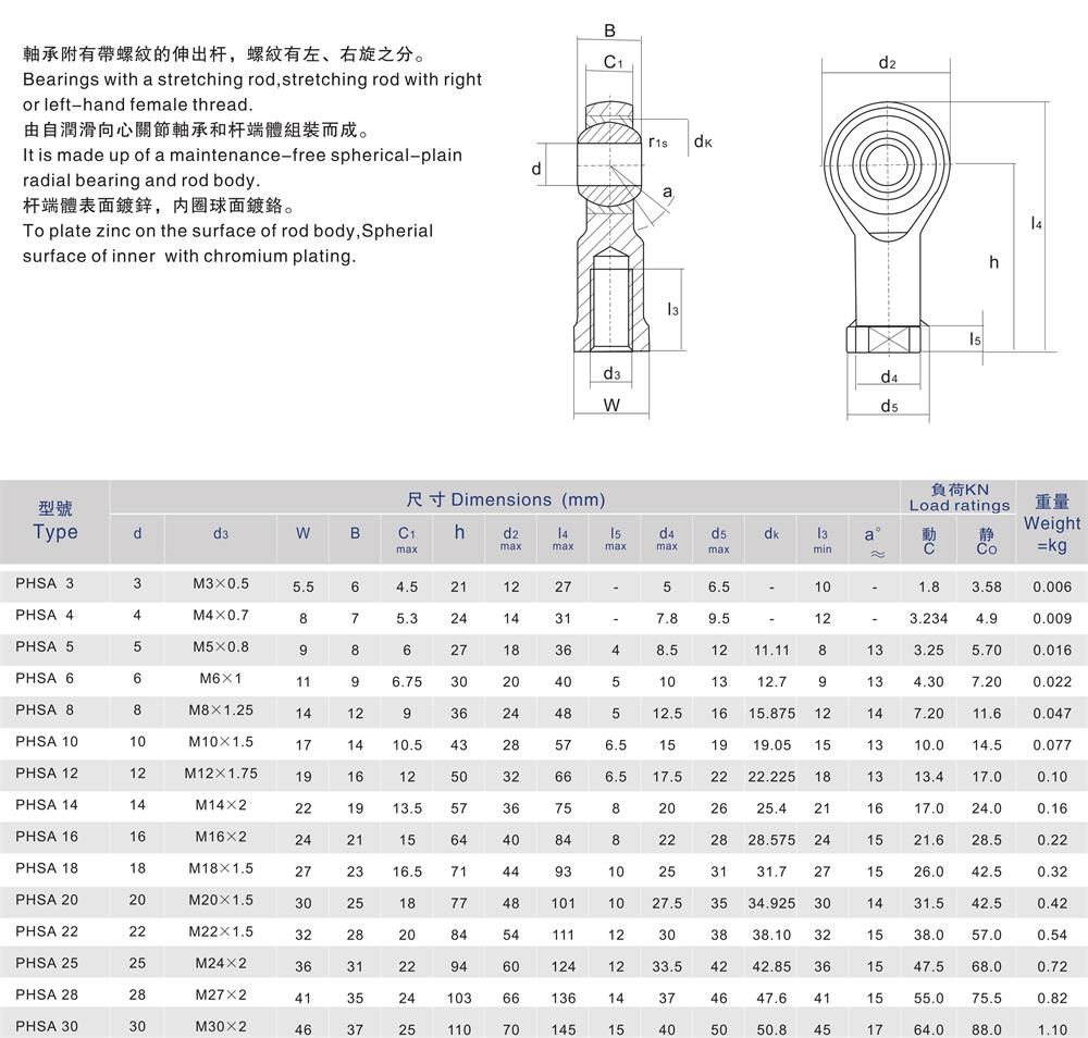 產品名稱:PHSA內螺紋自潤滑桿端關節軸承